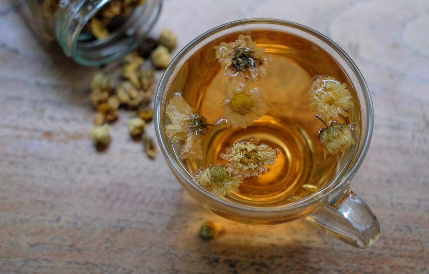 その代表格が「菊花茶」。乾燥させた菊の花をお湯に浮かべると、黄金色の花びらが広がり、ほんのり甘く爽やかな香りが漂います。