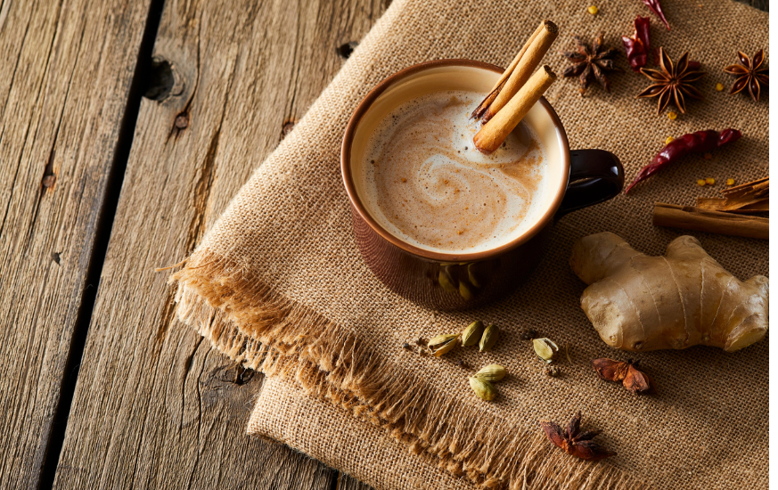 • 紅茶にミルク、砂糖、スパイス(カルダモン、シナモン、生姜など)を入れて煮出す。