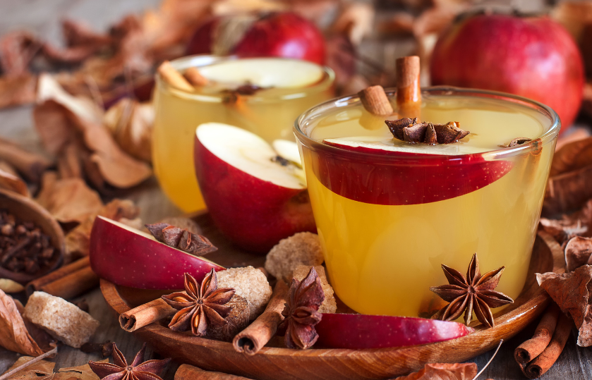 • スパイス入りのホットアップルサイダーも冬の風物詩。