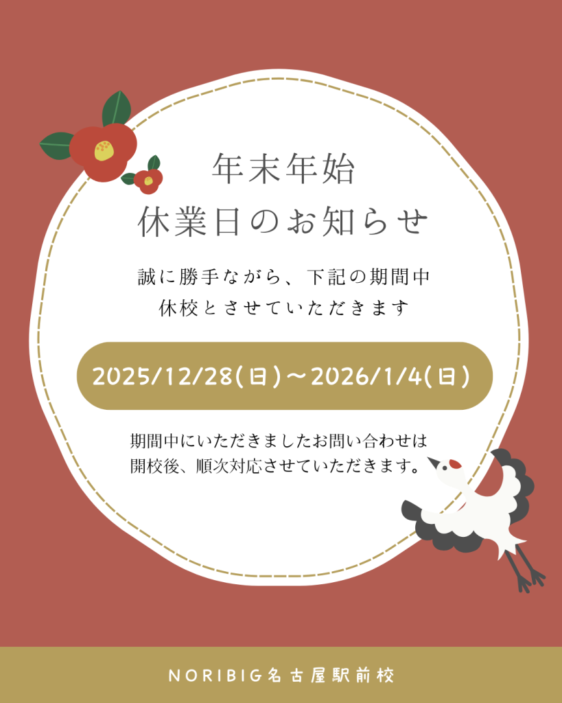 ※新年は1月5日(月)より通常通り開校いたします。