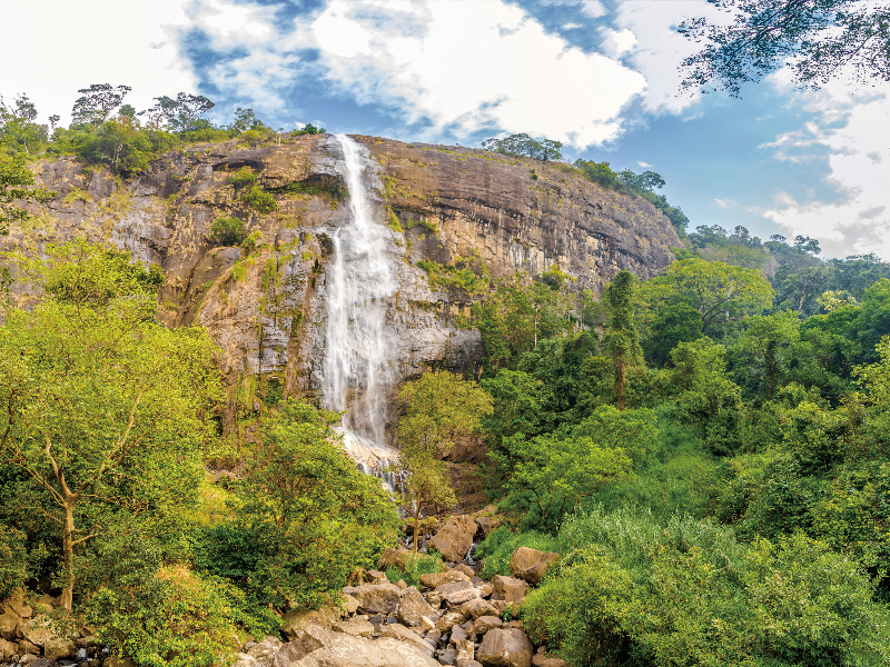 険しい山の岩肌から豪快に流れ落ちるディヤルマの滝。スリランカ内で2番目に高い滝で、高さは約220m。崖からのジャンプやスライダーのように滑れるエリアを楽しんだり、涼んだり、ゆっくり景観を眺めたりと、思い思いの時間が過ごせるスポット。また、夕日の絶景スポットとしても有名のようです。