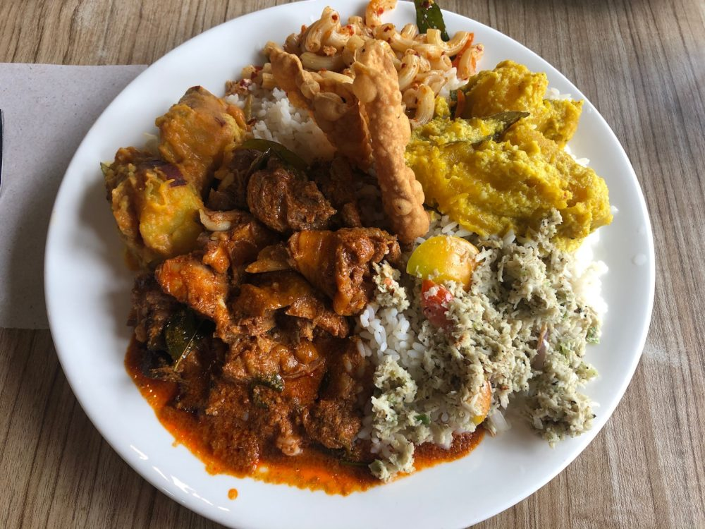 スナックにもカレーを付けてたべるのがスリランカ流。
